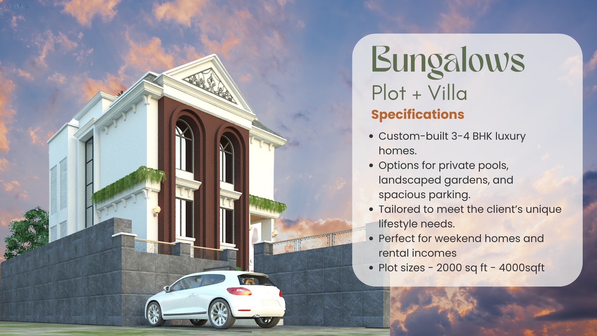 - The project takes care of 7/12 mutation, architect/engineer/consultant fees, and construction permission.
