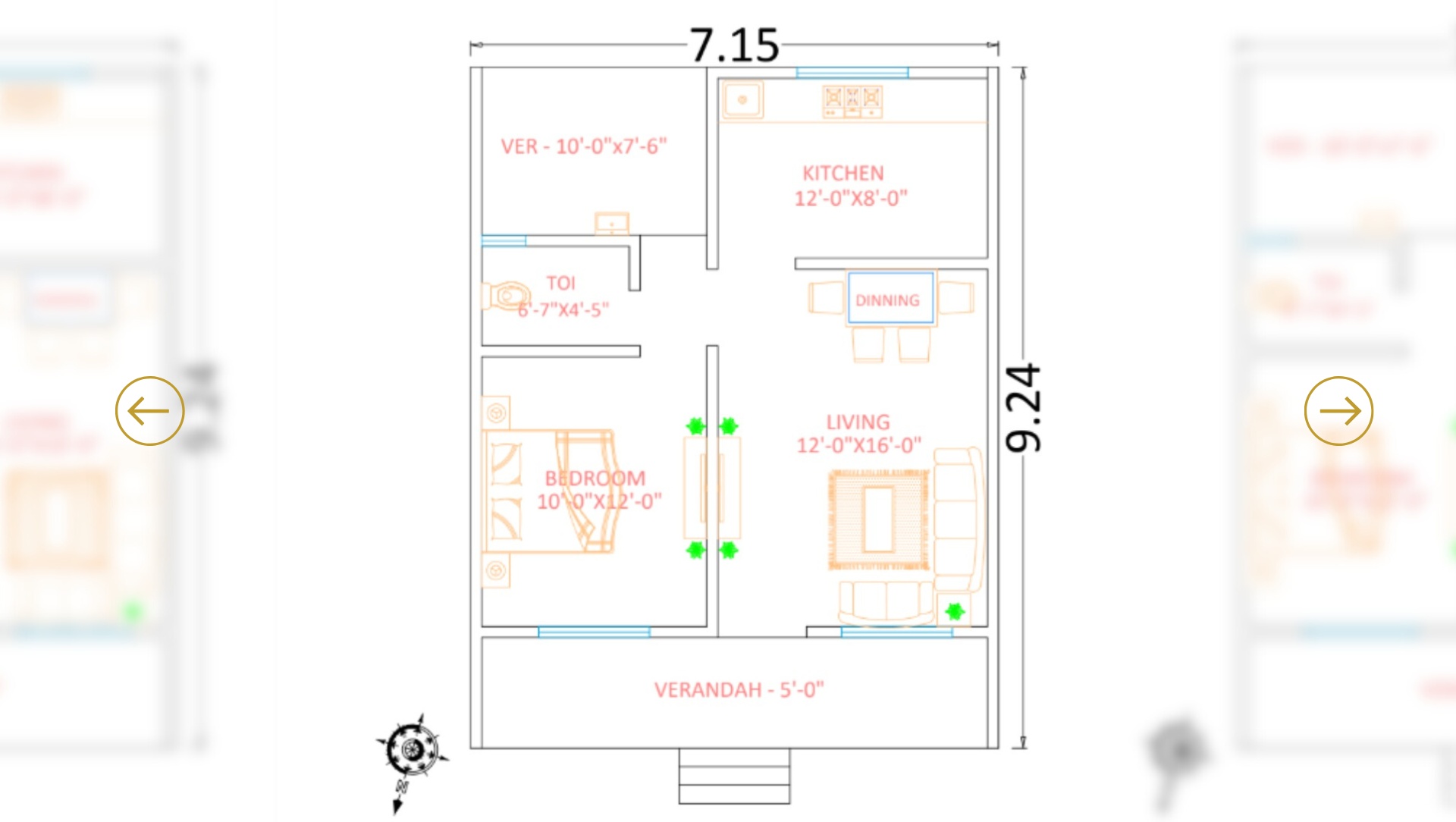 - Teak wood frame for the main door, granite frames for room and bathroom doors.